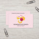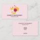 Cartes de visite à l'image douce d'une abeille rayée rose et blanche. Un morceau de nid d'abeille jaune derrière. Une lettre scellée avec un coeur et un groupe de coeurs flottants font également partie du design.