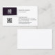 This accountant financial services business card features a black colored tab on the upper left. Your QR code appears on the lower left. Perfect for finance, investment, management, administration, marketing, professional, business services, simple, professional, elegant themes.