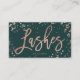 Un carte de visite d'artiste moderne et élégant, les yeux confectionnent la typographie à la main de style moderne en feuille d'or rose sur des plaques de confettis rose en or avec un arrière - plan émeraude personnalisable. Si vous avez besoin de personnalisation, n'hésitez pas à me contacter