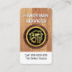 Une couche de bois est munie d'une plaque en bois rond près du centre qui abrite un logo "home handyman tools" en or que vous pouvez utiliser. En haut se trouve le nom d'entreprise "HANDYMAN SERVICES" que vous pouvez changer avec les coordonnées à la base, à l'intérieur d'une couche blanche. Le logo or est en haut, sur une couverture blanche. Ceci suivi par votre nom prestigieux et les coordonnées. Une grande carte pour le bricoleur, menuisiers, entrepreneurs de construction à utiliser.