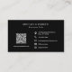 This modern minimalist professional black business card features a logo template on the front for you to add your own company logo, with QR code and contact information on the back, including social media icons.