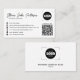 Modern custom company logo generic basic contemporary editable business card template with elegant typography script and QR code in simple black and white.
