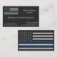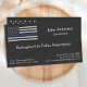 Ligne Bleue mince Cartes de visite de police drapeau américain - Etats-Unis Drapeau américain dans les couleurs Police Drapeau, sur un motif en faux cuir. Parfait pour tous les policiers, les forces de l'ordre et les services de police. Personnalisez ces cartes de visite de ligne bleu mince avec nom, service, adresse et coordonnées. Retour- 'Protéger et servir'. Ces cartes de visite d'agents de police sont parfaits pour tous les policiers, les forces de l'ordre et les services de police. DROIT D'AUTEUR © 2020 Judy Burrows, Black Dog Art - Tous droits réservés. Agent de police Carte de visite de l'application de la loi en cuir moderne
