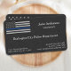 Ligne Bleue mince Cartes de visite de police drapeau américain - Etats-Unis Drapeau américain dans les couleurs Police Drapeau, sur un motif en faux cuir. Parfait pour tous les policiers, les forces de l'ordre et les services de police. Personnalisez ces cartes de visite de ligne bleu mince avec nom, service, adresse et coordonnées. Retour- 'Protéger et servir'. Ces cartes de visite d'agents de police sont parfaits pour tous les policiers, les forces de l'ordre et les services de police. DROIT D'AUTEUR © 2020 Judy Burrows, Black Dog Art - Tous droits réservés. Agent de police Mince Ligne bleue Carte de visite de l'application de la loi