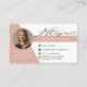 Moderne, tendance carte de visite photo Notaire dispose de script de typographie or rose "notaire" sur le devant, photo unique, coordonnées sur un rose or et arrière - plan blanc. Personnalisez davantage vos services et vos médias sociaux à l'arrière.