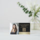 Devenez un professionnel avec ce carte de visite d'agent de signature de notaire élégant en noir et or. Présentant une conception moderne, la carte met en évidence votre nom, vos références et vos services, tels que la signature de prêts, les fiducies et les avis de procuration. Une section photo personnalise votre image de marque. Les accents d'or haut de gamme véhiculent la sophistication et la confiance, ce qui le rend parfait pour établir des connexions dans les secteurs de l'immobilier, du droit et de la finance.