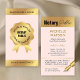 Cartes de visite publics notaires modernes en rose et or blush - parfait pour notaire public, agents de signature de prêts, avocats ou tout autre professionnel. Ce design carte de visite féminin présente des effets faux or, arrière - plan rose clair, badge notaire avec texte personnalisé et vos coordonnées. Vous pouvez modifier l'arrière - plan bleu marine à n'importe quelle couleur.
