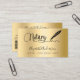 Un élégant carte de visite sur un arrière - plan à l'aspect métallique faux or et un stylo signature noire. Élégant script de style écrit à la main. Personnalisez et ajoutez Votre nom, titre, coordonnées et votre propre code QR à votre adresse de site Web.