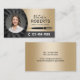Agent de signature de crédit et de publicité de notaire Cartes de visite de photos Black & Gold modernes.