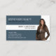 Lors de l'achat d'un carte de visite immobilier, il est important de garder à l'esprit que ce sera une représentation de vous et de votre marque. Ce carte de visite est facile à lire et à naviguer. Cette carte inclut une image personnalisable qui vous représente, vous et votre marque. Une capture d'écran professionnelle ou une image d'une propriété que vous avez vendue peut être une bonne option. N'oubliez pas que votre carte de visite est souvent la première impression que quelqu'un aura de vous et de votre marque. Cette carte représente fidèlement votre entreprise et vous. Tous les textes et images sont personnalisables à 100%. par 1bizchoice tous droits réservés.
