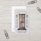 Magnifique carte de visite de style rustique et chic de style campagnard. Notre conception est composée d'une porte rustique en bois, avec une poignée de porte noire, une serrure et une fente de courrier. Lumières extérieures noires et revêtement gris clair, avec un tapis de porte de bonjour noir. Personnalisez avec votre nom d'entreprise et le texte facultatif placé au-dessus de la porte. L'envers affiche le nom et les coordonnées ainsi qu'une photo en option. Toutes les illustrations sont des oeuvres originales de Moodthology.