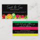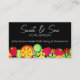 Fruits d'agrumes à l'orange, citron et citron vert aux fraises rouge vif et quelques fleurs abstraites décoratives sur ce carte de visite pour un home baker, boulangerie ou biz de boulangerie, chef pâtissier, chef personnel, cours de cuisine, traiteur ou traiteur, personnalisé avec votre choix de couleurs et de polices.