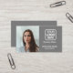 Des cartes de visite modernes, simples et professionnels sur arrière - plan gris avec typographie blanche pour correspondre à votre logo personnalisé présente la photo des employés sur le devant.