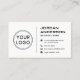 Couleur blanche ou personnalisée, design carte de visite moderne et professionnel avec des champs de modèle pour nom, nom de l'entreprise/titre, logo (photo ou autre graphique) et des informations de contact, y compris des icônes de médias sociaux. Modifiez la couleur de l'arrière - plan, déplacez et redimensionnez les éléments avec l'outil de personnalisation.
