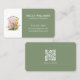 Ajoutez votre logo Social Media QR Code Entreprise Blanc Botanique Blanc Botanique Floral Landscaper Carte de visite avec votre logo d'entreprise, avec votre nom et les coordonnées d'un arrière - plan vert. Au contraire, votre code QR personnalisé pour vos clients à analyser. Conçu par ©Evco Studio www.zazzle.com/store/evcostudio