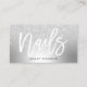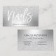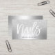 Un carte de visite moderne et élégant élégant de spécialiste en clous avec l'aluminium métallique d'ombre argenté de parties scintillantes. tout le texte est personnalisable, ajoutent vos médias sociaux.