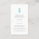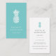 Les élégants cartes de visite verticaux présentent une illustration d'ananas blanc sur un arrière - plan tropical turquoise et dynamique avec deux lignes de texte personnalisé. Customisez le dos avec vos coordonnées complètes, affichées sous une illustration d'ananas plus petite dans le bleu d'oeuf de robin.