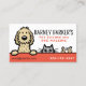 Ce carte de visite assis original présente une illustration fantaisiste d'un adorable chien, d'un chat sournois et d'un cobaye curieux. Le côté arrière a plus d'espace pour vos informations sur un arrière - plan rouge vif avec de mignons empreintes de pattes. Un charmant carte de visite qui fera une grande impression avec les propriétaires d'animaux à la recherche d'une chaise pour animaux de compagnie fiable et attentionnée.