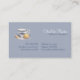 Élégant carte de visite bleu foncé avec une vieille théière de chinoiserie bleue et blanche et tasse de thé avec quelques citrons jaunes frais. Cet exemple est conçu pour s'adapter à un magasin d'antiquités ou à un collectionneur mais peut être tout aussi charmant pour un café ou une maison de thé confortable, ainsi que des stylistes intérieurs, des boulangeries artisanales, des boutiques de maisons et de jardins, ou même un bed and breakfast plein de caractère.