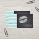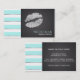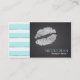 Aqua Blue White Stripes Faux Silver Shine Lips Carte de visite