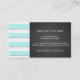 Carte De Visite Aqua Blue White Stripes Faux Silver Shine Lièvres