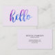 Cartes de visite uniques et créatifs avec un design de typographie hello aquarelle tendance en bleu, violet et rose. Modifiez la couleur arrière - plan et la couleur du texte à l'arrière pour un look personnalisé. Conçu avec des coiffeurs, des cosmétologistes, des maquilleurs et d'autres professionnels créatifs en tête.