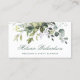 Moderne Elegant Aquarelle Carte de visite de verdure comprend des feuilles d'eucalyptus, le feuillage botanique vert, feuilles bleu poussiéreux et d'autres belles verdure botanique. Script Or, Sage Green Back.