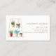 Faites une grande première impression avec ce carte de visite de plantes ménagères suspendues. il présente des illustrations aquarelles de plantes tropicaux, de plantes ménagères et de succulents sur des planteurs colorés. Personnalisez en ajoutant nom, nom commercial, site Web, numéro de téléphone et bien plus encore. Ce carte de visite plante est parfait pour les pépinières, les centres de jardinage, les plantes en ligne et bien plus encore.