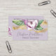 Ce carte de visite fleuri romantique dispose d'un élégant arrière - plan violet lavande avec des fleurs de magnolia aquarelle. Un délicat bouquet de magnolias est représenté sur le dessus, accentué d'un motif d'encre d'alcool en feuille d'or. Un exemple de nom est imprimé en bas dans une police de script élégante suivie d'un titre de tâche.