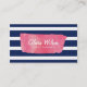 Carte De Visite Aquarelle rose chic et bandes bleues Médias sociau
