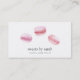Le design simple et élégant du macaron français pour les boulangers, les décorateurs de gâteaux ou les professionnels de la boulangerie dispose d'un trio de biscuits macaron aquarelle dans l'aquarelle rose pastel. Personnalisez avec deux lignes de texte personnalisé sur le devant, et ajoutez vos coordonnées complètes au verso. Ce design est également disponible en formats vertical et carré !