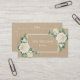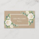 Cette carte de visite rustique élégante présente des roses blanches peintes à l'aquarelle et de la verdure de feuilles d'eucalyptus sur un fond en papier Kraft. Avec un code QR scannable au verso.