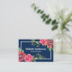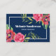 Carte De Visite Aquarelle Rouge et rose Fleurs sur bleu marine fon