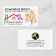 La couverture présente un bâtiment rouge sur le toit qui a besoin d'être réparé. À côté, il y a un arbre brun d'outils de construction handyman où chaque icône peut représenter certains des services que vous offrez, par exemple le marteau-spanner peut représenter le remodelage de la maison, la machine à laver pour les réparations électriques, etc. En haut de la carte se trouve le nom d'entreprise "HOME REPAIR SERVICE" que vous pouvez modifier et ses coordonnées. Votre nom prestigieux et votre titre professionnel sont à la base de la carte, à côté de l'échelle verte. En haut se trouve un logo de marteau d'or que vous pouvez utiliser suivi de votre nom prestigieux, des coordonnées et une option de slogan pour faire connaître vos services. Un design idéal pour les bricoleurs, entrepreneurs, constructeurs et entreprises de remodelage. #handyman #constuctionhandyman #homerepaircontractant #construction #chantier #remodelage #handymantools #construction #chantier de construction #homerepair #interiordesign#toofer #roofingcontractant #zazzlemade