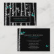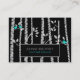 Un carte de visite au design rustique moderne mais sucré unique possède un arrière - plan noir peuplé de bouleaux et de feuilles en chute.De mignons petits oiseaux bleus turquoise et une paire d'oiseaux bleus adorent se dresser contre le arrière - plan noir.Les bouleaux et les feuilles sont de couleur gris argenté et ressortent sur le arrière - plan noir.