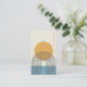 Un art abstrait minimal avec un design géométrique du milieu du siècle en moutarde, bleu et noir sur un arrière - plan blanc cassé