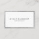 Cette carte de visite simple, élégante, argentée et aux bords noirs est moderne mais classique. Les lignes propres sont polies et nettes. La police est sobre mais luxueuse.