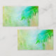 modèle de carte de visite d'art tropical feuille de palme aquarelle design dans les tons bleu et vert. Copyright artistique Ann Powell