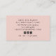 Ce carte de visite dispose d'une disposition photo avec une photo moderne pour les maquilleurs, spas, salons de cheveux. ou toute activité de beauté. Le verso contient les informations de contact et le nom de l'entreprise. Vous pouvez customiser la taille du texte, la police, pour adapter votre style personnel. Remplacez cet exemple de photo de porte-place par votre propre carte de visite d'orientation portrait. Un arrière - plan rose pêche à l'avant et à l'arrière de la carte.
