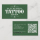 Faites une première impression audacieuse avec ce carte de visite de tatouage classique et minimal. Doté d'un arrière - plan noir ou vert frappant avec une police d'inspiration vintage et des fleurs ornementales, ce design respire le professionnalisme et le charme intemporel. Que vous soyez un artiste de tatouage expérimenté ou que vous commenciez votre voyage, cette carte reflète votre dévouement à l'art et à la tradition du tatouage. Personnalisez la carte avec votre nom, votre adresse de magasin, vos coordonnées et les poignées de médias sociaux pour vous assurer que vos clients peuvent facilement se connecter avec vous. Le design de haute qualité est parfait pour présenter l'ambiance unique de votre magasin de tatouage tout en maintenant une apparence propre et professionnelle. Ce carte de visite est idéal pour les artistes de tatouage, les professionnels du perçage ou toute personne de l'industrie du body art qui cherche à représenter leur art avec style et authenticité. Remettez-les à vos clients ou présentez-les au comptoir de votre boutique pour laisser une impression durable.