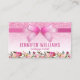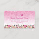 Cartes de visite de beauté professionnelle tendance, avec un arrière - plan de parties scintillant rose, un ruban luxuriant, un décor fleuri et un modèle facilement personnalisé.
