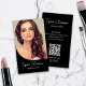 Créez un carte de visite professionnel et moderne avec une photo personnalisée à l'avant et des détails personnalisés, ainsi qu'un code QR scannable à l'arrière pour faciliter la mise en réseau, et des icônes de médias sociaux modifiables. Réglez facilement les polices, les couleurs, les arrière - plans et la mise en page pour correspondre parfaitement à votre style. Idéal pour les maquilleurs, les coiffeurs, le salon de beauté et les entreprises qui souhaitent offrir une présentation réfléchie et professionnelle !