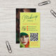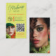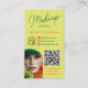 Une conception de carte de visite frappante et élégante pour les artistes de maquillage qui veulent se démarquer. Cette mise en page verticale audacieuse présente deux photos avant-gardistes mettant en valeur des looks de maquillage aux tons vert citron vibrant, vert profond et orange corail, parfaitement encadrés par une typographie moderne et un code QR pour un accès rapide à votre réservation ou à votre liste de prix. Le fond vert citron contraste magnifiquement avec les visuels intenses, lui donnant une touche éditoriale de haute mode. Idéal pour les artistes maquilleurs, les stylistes, les créatifs de beauté éditoriale ou les MUAs qui construisent une présence de marque sur les réseaux sociaux.