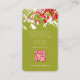Ce design à thème asiatique présente une illustration minimaliste moderne de feuilles de bambou orientaux aux couleurs rouge, vert et blanc. L'avant de la carte présente des feuilles rouges et verts sur un arrière - plan blanc zen tandis que l'arrière de la carte a des feuilles rouges et blancs sur un arrière - plan vert jade. La disposition et le texte des deux côtés sont propres et simples. Il y a beaucoup d'autres fonctionnalités d'édition disponibles et de nombreux types et styles de polices à choisir dans la page produit personnalisée. Conçu par fat*fa*tin. Facile à customiser avec votre propre texte, photo ou image. Pour des demandes personnalisées, veuillez contacter fat*fa*tin directement. Des frais personnalisés s'appliquent. www.zazzle.com/fat_fa_tin www.zazzle.com/color_therapy www.zazzle.com/fatfatin_blue_knot www.zazzle.com/fatfatin_red_knot www.zazzle.com/fatfatin_mini_me www.zazzle.com/fatfatin_box www.zazzle.com/fatfatin_design www.zazzle.com/fatfatin_ink