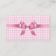 Carte de visite mignon de guingan, avec les roses roses et le feuille vert avec d'arc le dos rose dessus. Ajoutez votre raison sociale, adresse, numéro de téléphone et heures sur ce joli carte de visite. Mignon pour un fleuriste, un magasin d'édredon, des affaires de couture, un magasin de beauté ou toutes affaires féminines.