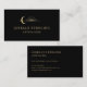 Luxury black and gold business card for astrologers featuring a celestial sun and moon design. Created to present your contact details with a mystical, elegant, and high-end appearance that reflects spiritual insight and professionalism. Ideal for astrology consultations, readings, spiritual businesses, events, networking, and referrals. Editable text. Clean print-ready layout.