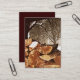 Cette carte de collection d'artiste comporte une pile de bois de chauffage. Le bois est empilé dans le hangar. Au delà du tas de bois est une scène hivernale froide et neigeuse.