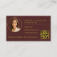Carte De Visite Attorney at Law Burgundy Gold Photo QR Code