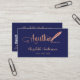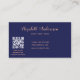 Un élégant carte de visite sur un arrière - plan bleu marine et un stylo en plumes d'or rose. Élégant script de style écrit à la main. Personnalisez et ajoutez Votre nom, titre, coordonnées et votre propre code QR à votre adresse de site Web.