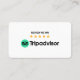 Cette carte de visite accrocheuse est conçue pour encourager les clients à vous laisser un avis sur Tripadvisor. Elle présente un design lumineux et coloré avec le logo Tripadvisor et une note de cinq étoiles, soulignant l'importance des avis positifs.